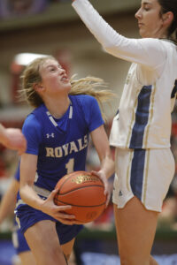 The Firebirds kept the defensive pressures on the Royals but South Prairie-Max began working the ball into the paint more and the inside attack had Devils Lake in foul trouble early in the second quarter. At the 6:04 mark of the second quarter, Royals’ freshman Rylee Routledge, an all-tournament team selection, left the game with an injury and didn’t return.