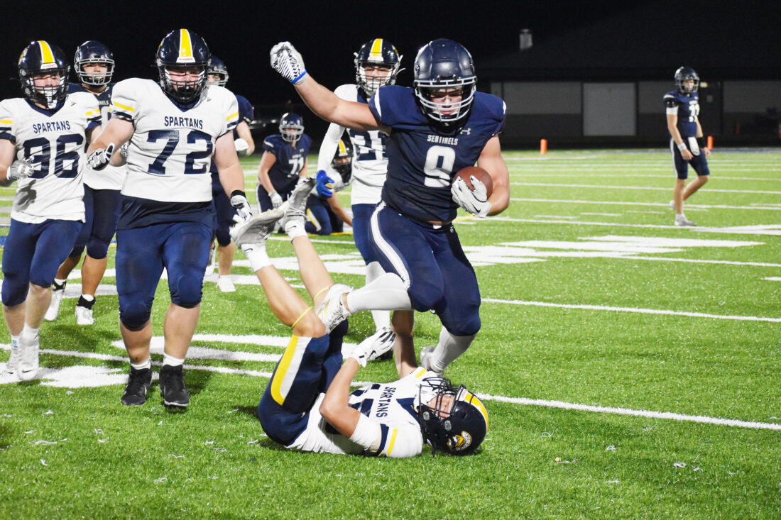 The Sentinels also took advantage of several presnap penalties by the Spartans, including a critical offside on a fourth down that allowed the drive to continue to that Blikre would later find the end zone on. The Sentinels got tricky on the extra point, executing a fake that saw Hannon convert the two-point conversion.