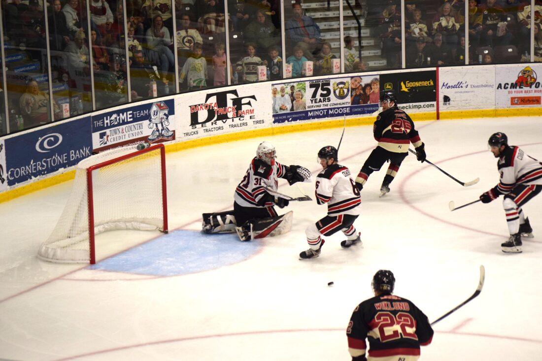 “There were a ton of positives to take away from both games, especially with how many guys we have hurt right now,” Minot coach Tyler Ebner said. “That’s not always an excuse you can make, but playing with nine and 10 forwards both nights is tough. I thought we did a good job Friday night of finishing when we had opportunities. Tonight, their goalie played really well and saved a ton of great As we had to put in the back of the net.”
