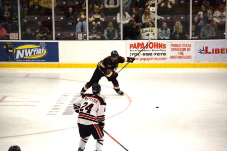 Playing in front of the home crowd for the first time since their season-opening series against North Iowa back on Sept. 19-20 that saw them play nine straight games on the road since, the Tauros gave the fans plenty to cheer about early on Friday, netting the contest’s first two goals in the opening eight minutes of the first period. Michael Solominsky potted the first one following an Aberdeen turnover in its own end. The Tauros took control of the puck and Solominsky ripped a shot from above the faceoff circle past starting goaltender Adam Dybal over his stick-side shoulder.
