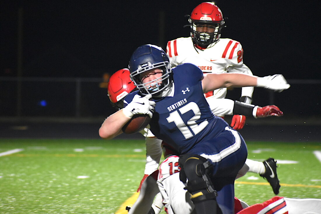 The teams remained tied into the fourth quarter, but the Sentinels were able to wear down Red River in the end, outscoring the Roughriders 14-0 over the final 12 minutes on touchdown runs from Christian Deadmond and Evan Berg. Deadmond led the ground attack with 120 yards on 20 carries and Berg added 62. The Sentinels finished with 201 yards on the ground.