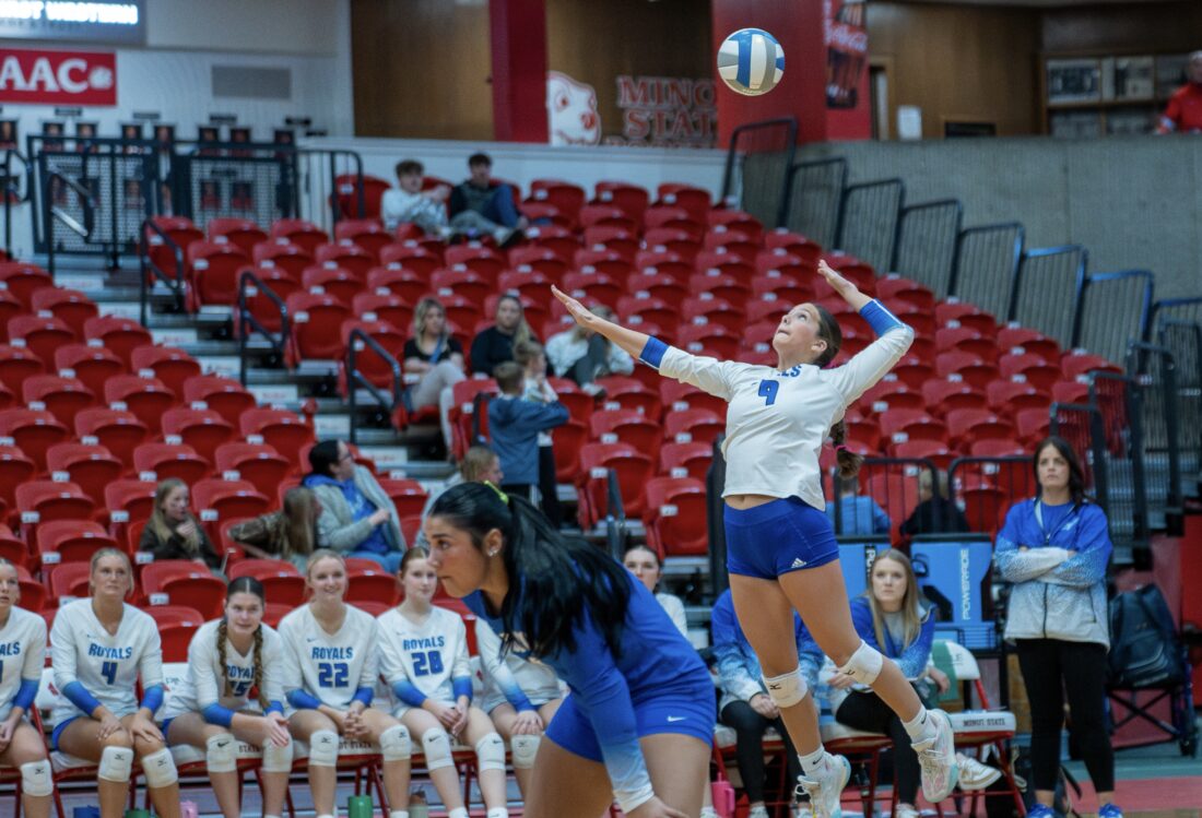 Submitted Photo The South Prairie-Max Royals have secured the 2025 NDHSAA Region 3A Volleyball title in their 3-1 victory over the Des Lacs-Burlington Lakers. Check Friday’s paper for match breakdown. Royals sophomore setter Reagan Trudell serves the ball during this week’s tournament. Photo by Sadie Weninger