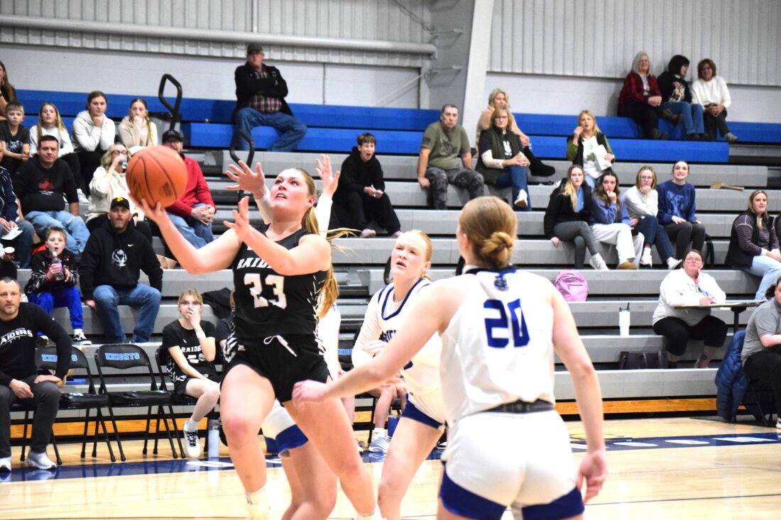 The Raiders went the first half of the fourth quarter without a made field goal, but knocked down four in the span of the next two minutes to stretch their lead to double digits at 41-31 with 2:04 remaining. Shaylee Hase, Mariah Mack, Giselle Mayer and Bruner all hit shots during that run to ensure their first district win of the season.