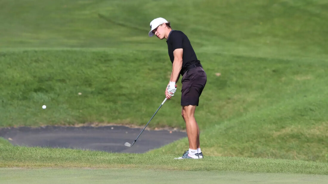 File photo of Minot State junior Gunther Soltvedt as he chips at the University of Mary's 5th annual Marauders Tournament at Hawktree Golf Club Sept. 29-30. Photo courtesy of MSU Athletics, photo by Diana Stetson.
