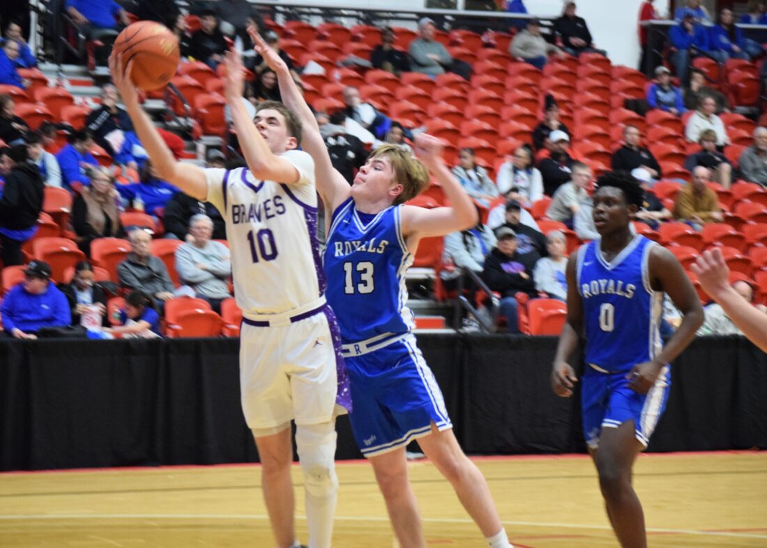 The second-seeded Braves (14-8) trailed by as many as 12 in the first half and trailed 31-24 at halftime. The Royals (8-14) shot 40.9 percent from the field in the opening half David Eberle paced the Royals over the first two quarters, pouring in 16 points. He knocked down a pair of 3-pointers and his first basket of the second quarter sparked a 12-3 run to stake South Prairie-Max out to a 31-20 lead.