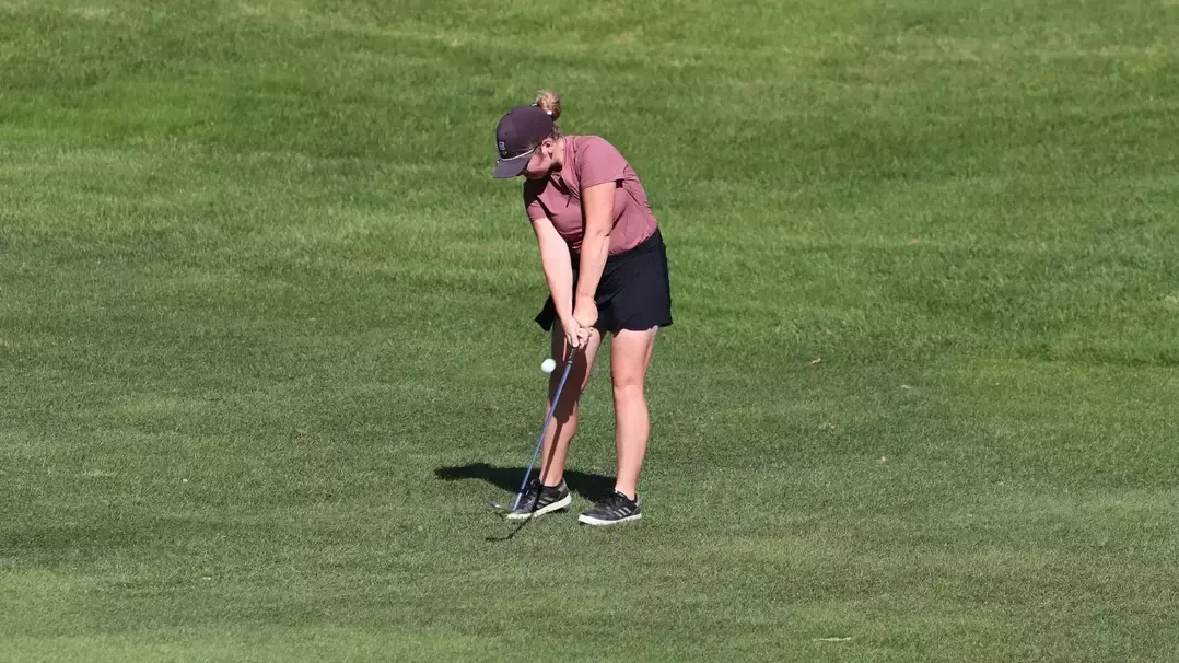 Minot State women's golfer chips the ball. The Beavers were in Blue Springs, MO for the NSIC Women's Conference Preview on Monday and Tuesday, Mar. 30-31. Submitted photo from MSU Athletics, by Diana Stetson