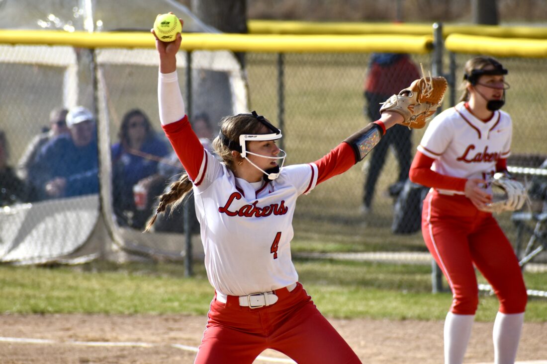 The Des-Lacs Burlington/Lewis & Clark Lakers varsity softball team were back at home on Tuesday, Apr. 21, to take on Renville County. The Lakers handily defeated Renville County 11-1, with the Lakers’ sophomore pitcher, Emma Feller, throwing a no-hitter on the night.