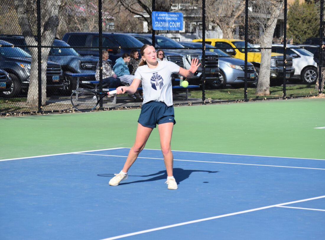 The Braves clinched the victory with wins at No. 1 and No. 2 doubles. Benz and Hailey Intveld topped Clark and Weishaar, 6-2, 6-3, and Tayla Intveld and Peterson defeated Bennett and Emersyn Kop, 6-1, 6-3. Stoner and Alyviah Kopp delivered a 6-4, 6-2 victory over Feist and Cornell.