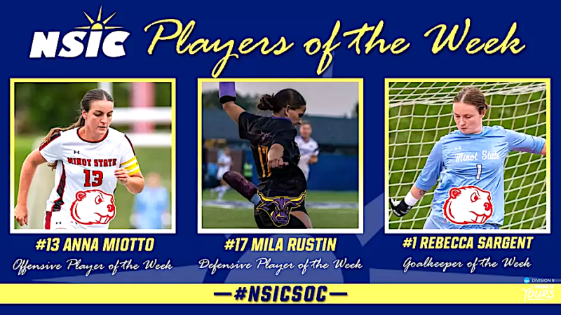 Monday, the league announced its Players of the Week and Minot State forward Anna Miotto and goalie Rebecca Sargent were honored as the NSIC Offensive Player of the Week and the ...