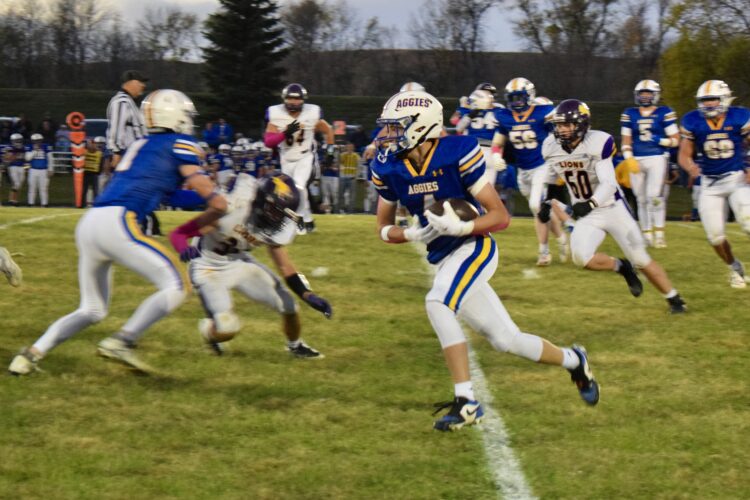 The Velva-Drake-Anamoose-Garrison Aggies will keep the Penny trophy for the fourth year in a row after their home game victory against rival Bishop Ryan Lions 41-14 on Friday, Oct. 10.