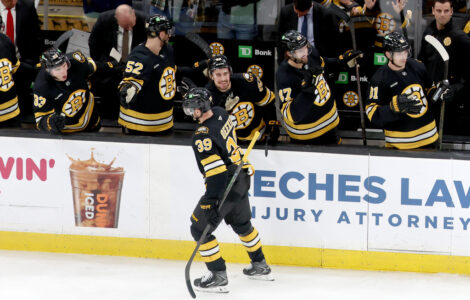 Pastrnak, Elias Lindholm and Mikey Eyssimont scored during Boston's second-period rally after the Bruins ...
