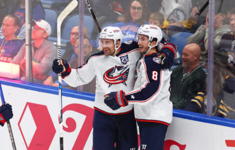 BUFFALO, N.Y. (AP) — Miles Wood scored twice, with his second goal coming 2:53 into overtime, to rally the Columbus Blue Jackets to a 4-3 win over the Buffalo Sabres on Tuesday night.