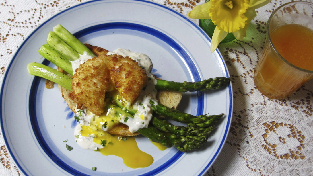 Here’s a special dish tailor-made for an elegant spring brunch. It requires slightly more than the usual amount of work, but it’s so worth it. Most of the recipe’s several components can be prepared ahead of time, then reheated and assembled at the last minute.