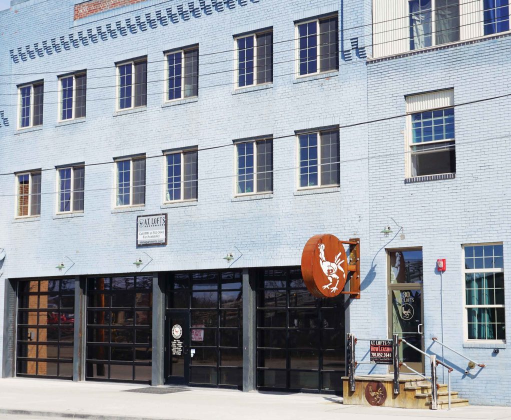 - Jill Schramm/MDN A former farm implement building now houses The Starving Rooster and The Lofts apartments in Minot’s downtown historic industrial area.