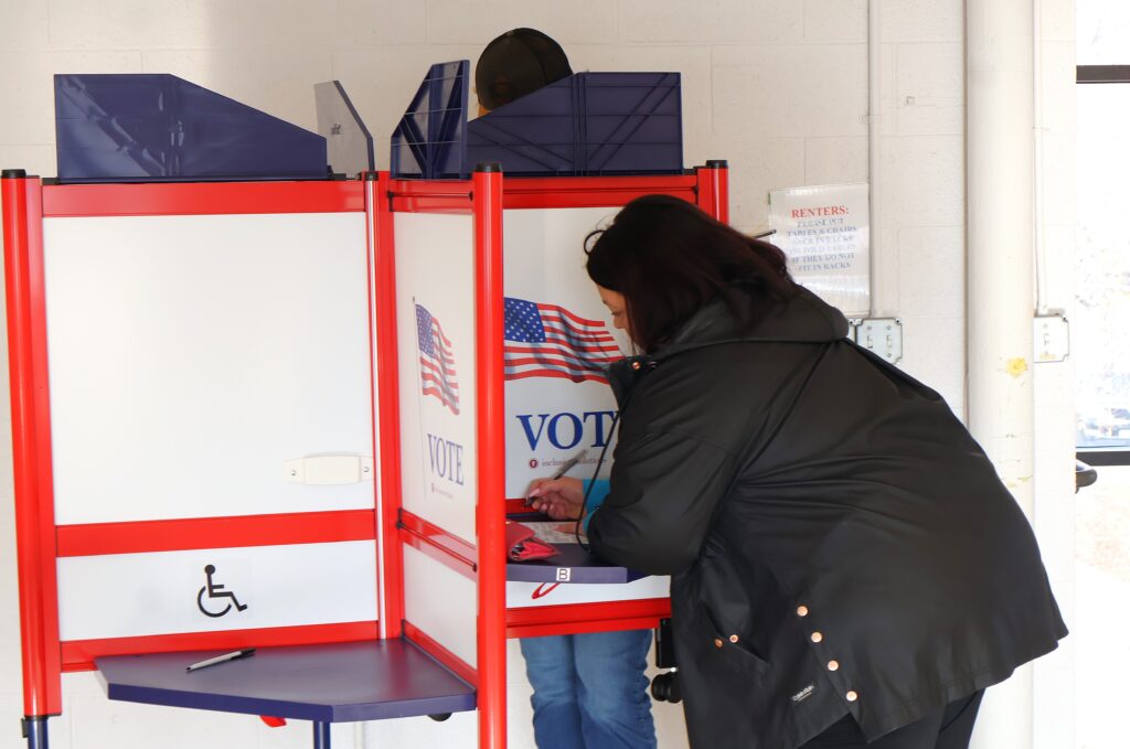 Submitted Photo A voter fills out a ballot at the Hillside Aquatic Complex in Bismarck on Election Day, Nov. 5, 2024. Photo by Michael Achterling of North Dakota Monitor.