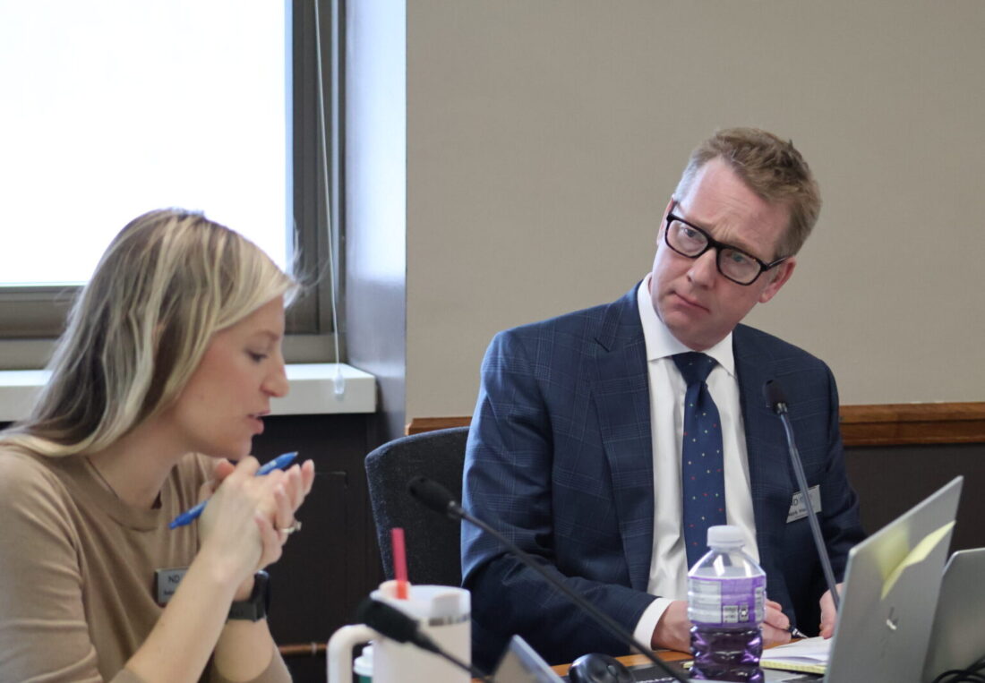 Submitted Photo North Dakota Ethics Commission member Mark Western listens to Executive Director Rebecca Binstock during a Feb. 18 meeting at the North Dakota Capitol in Bismarck. Photo by Mary Steurer, North Dakota Monitor.